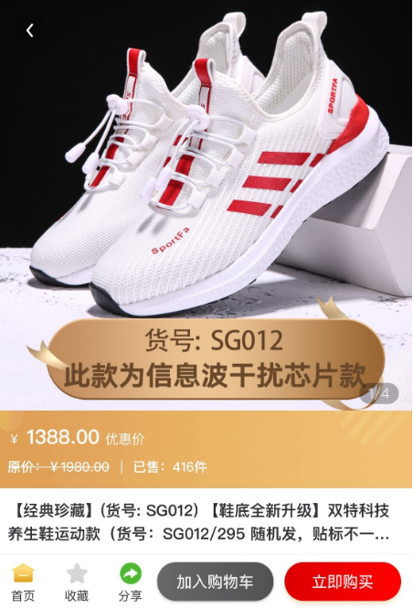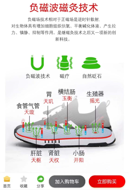 云算力挖矿平台至少还用了一个实际存在的概念。而“量子鞋”的宣传语则完全脱离了科学常识。记者在产品介绍中看到,399元的鞋宣称自己使用了“纳米量子远红外科技”,更高级别的鞋子则添加了“负磁波磁灸科技”。最贵的鞋子被称作“尿酸款”,但记者反复浏览产品介绍,也没看出它跟尿酸有什么关系。在量子鞋的会员群中,导师对鞋的功效更是吹上了天,号称可以包治百病。事实上,此前就有多家媒体报道过“量子鞋”概念造假,而国家市场监管总局也曾对“磁灸”的虚假宣传进行过整治。