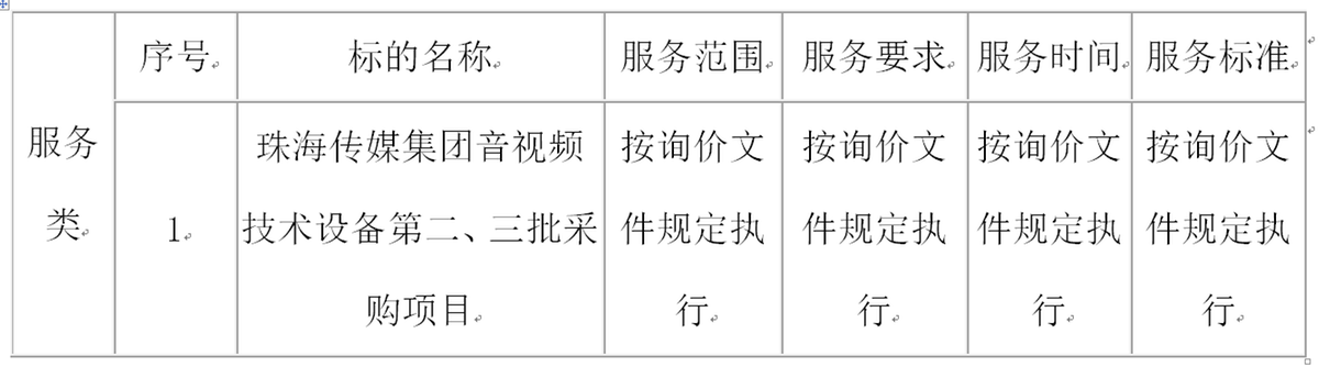 珠海传媒集团音视频技术设备第二、三批采购项目