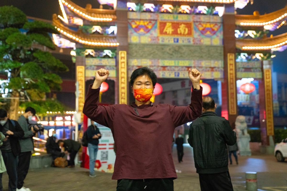 "解封了!解封了!"市民们相互传达消息。新的一天正有序开始。