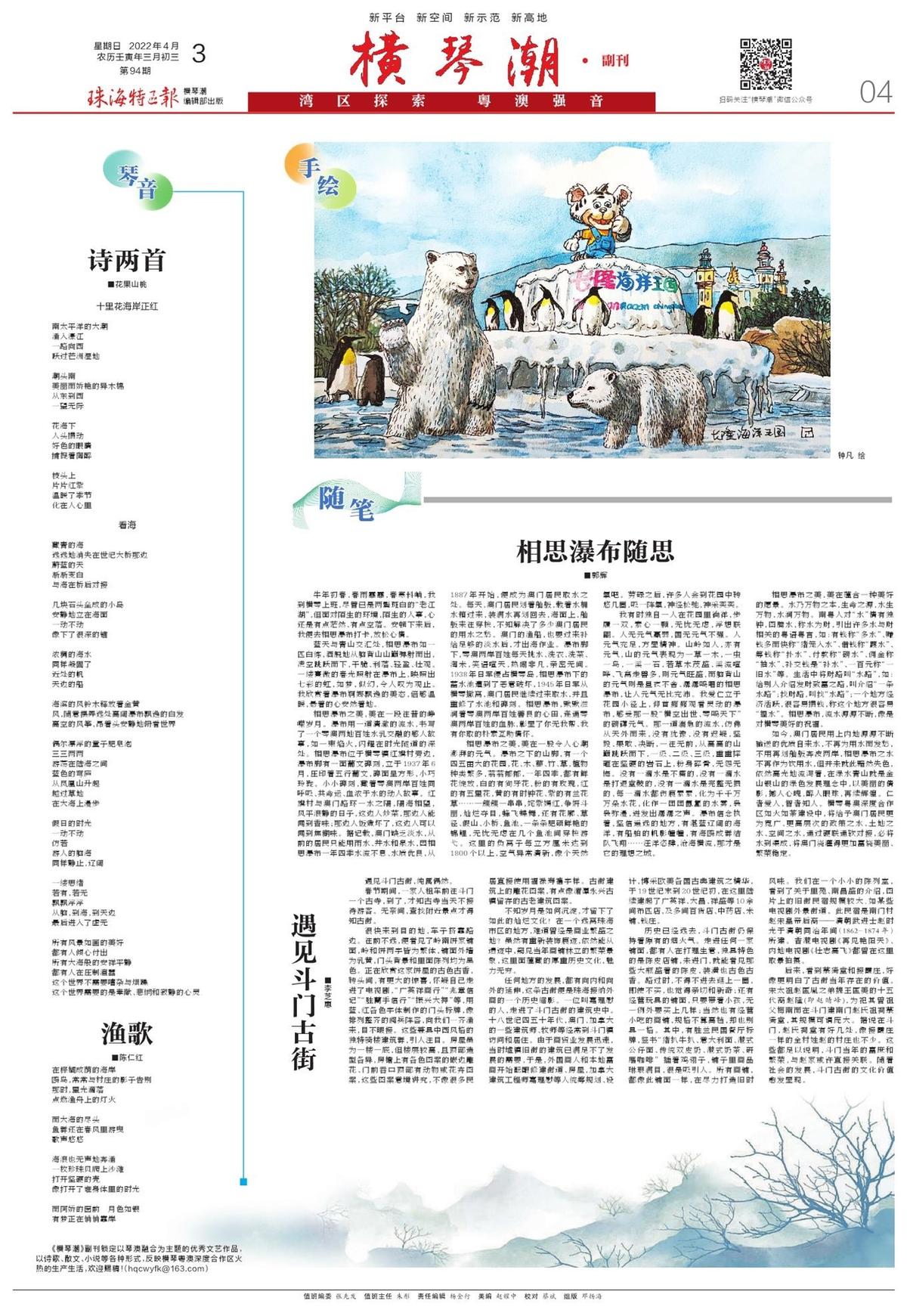 牛年初春,春雨霏霏,春寒料峭,我到横琴上班,尽管已是两鬓斑白的“老江湖”,但面对陌生的环境,陌生的人事,心还是有点茫然、有点空落。安顿下来后,我便去相思瀑布打卡,放松心情。