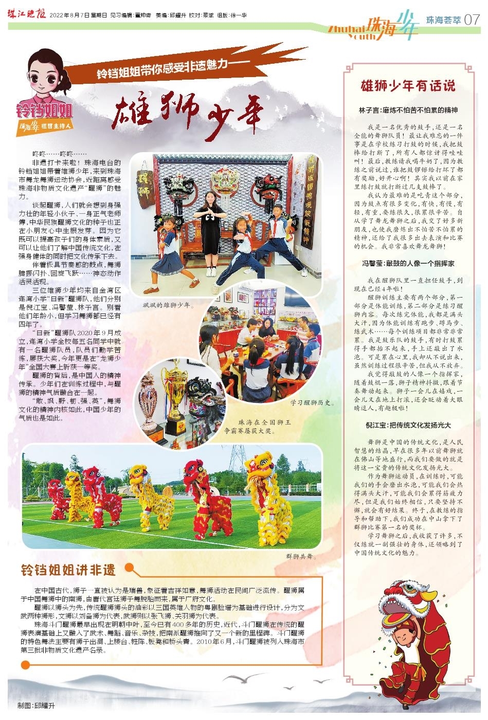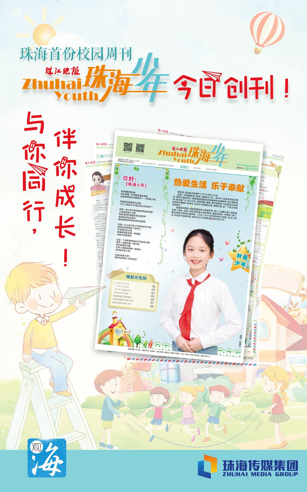 少年强则国强,少年进步则国进步。少年儿童是祖国的未来,是中华民族的希望。在《珠海教育高质量发展十条措施》发布之际,珠江晚报重磅推出《珠海少年》校园周刊,以立德树人为己任,实行开门办报,全心全意为全市中小学生办好一份属于自己的优秀校园课外读物。