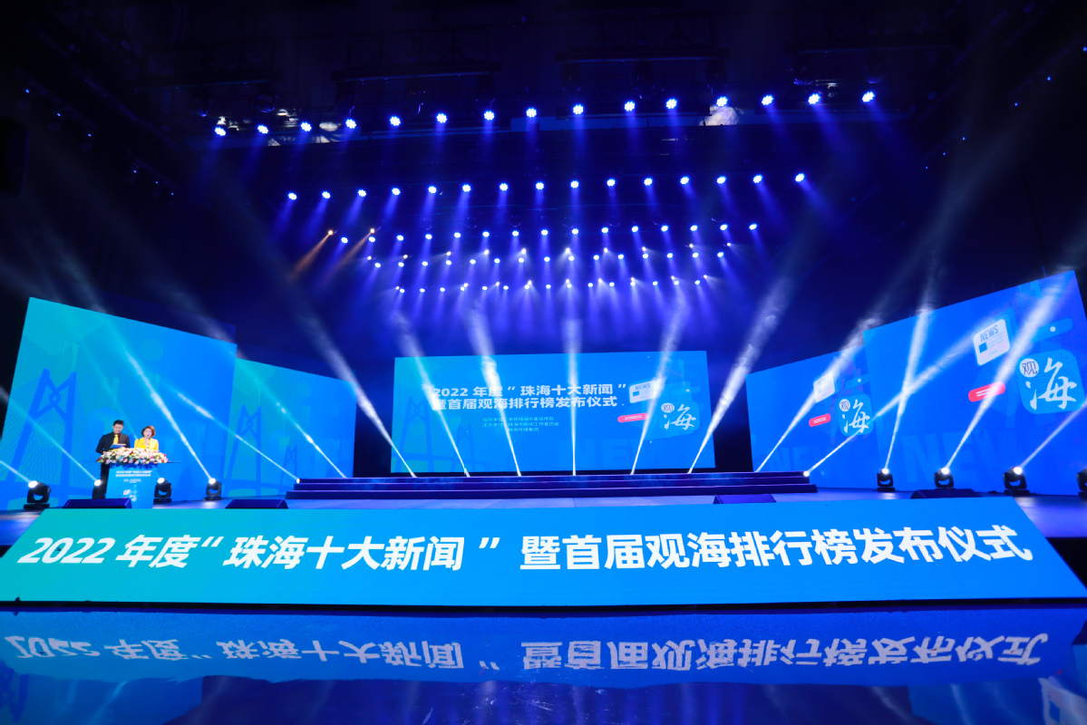 1月9日下午,2022年度“珠海十大新闻”暨首届观海排行榜发布仪式在珠海传媒集团电视演播大厅举行。