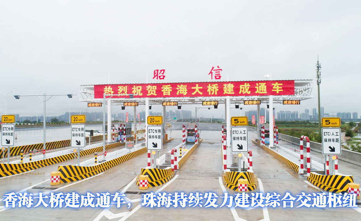 2022年11月6日,珠海举行香海大桥通车仪式。通车范围包括香海大桥主线及支线,全长29.8公里。香海大桥是广东省高速公路网规划中的香洲至海泉湾高速公路首期工程,是联系市内多个组团的东西向交通大动脉,整体呈“L”型走向。从珠海大桥,到如今的香海大桥、洪鹤大桥、金海大桥三条新“巨龙”横卧西江磨刀门水道,近10年来,珠海交通基础设施建设大会战构建起一张高快速路网,发力参与“轨道上的大湾区”建设,更朝着“珠江口西岸轨道交通中心”目标进发。