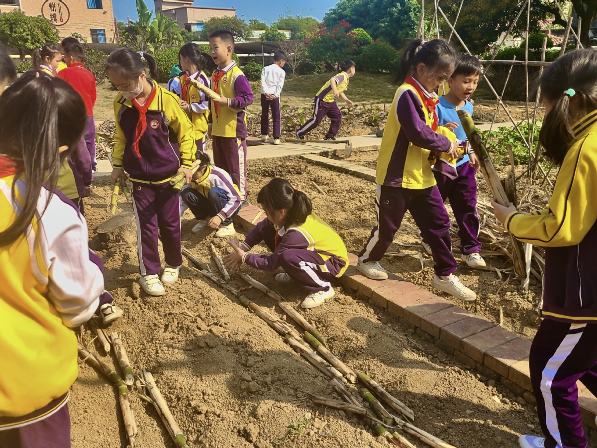 学种甘蔗,白蕉镇白石小学将课堂搬到田间地头