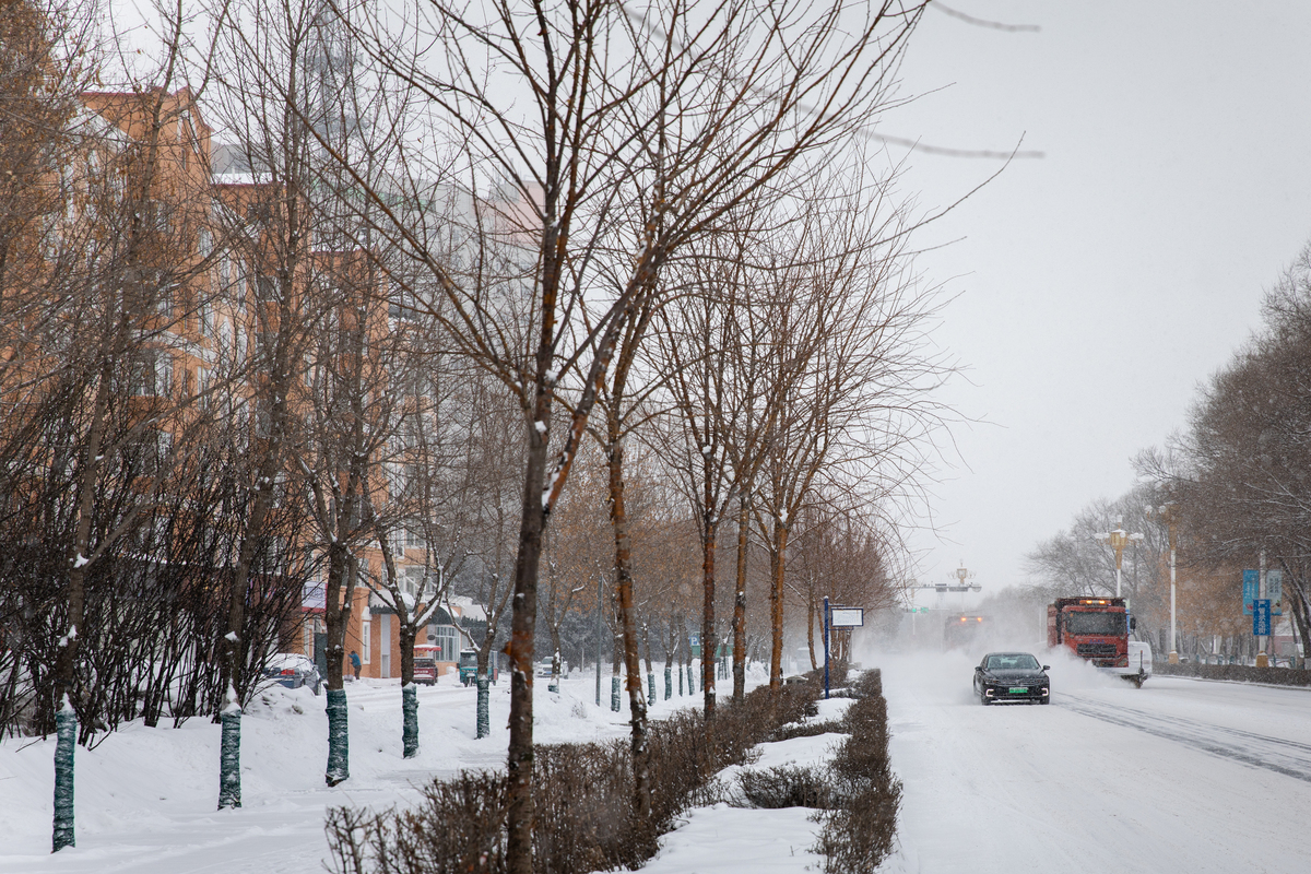 白雪却嫌春色晚,故穿庭树作飞花。短暂的回暖后,黑河今日再迎降雪。在最低气温不足-10℃的当下,一场无甚寒意的春雪不但对黑土地的增墒保墒、春播生产有利,对市民来说亦属难得美景。