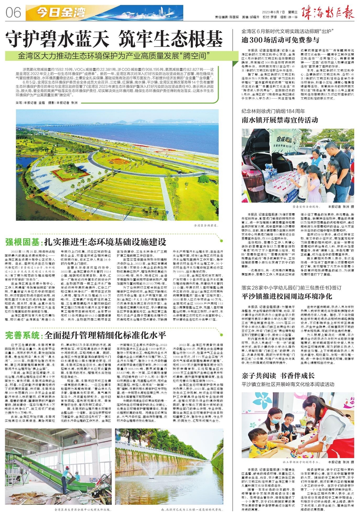 涉氮氧化物减排量约1592.19吨,VOCs减排量约22.381吨,涉COD减排量约908.195吨,氨氮减排量约82.827吨……这是金湾区2022年交上的一份生态环境保护“成绩单”。新的一年,金湾区再次对深入打好污染防治攻坚战做出了部署,将在确保大气管控提质增效、水环境质量稳定达标、土壤安全扎实保障、基础设施有效运行等方面发力,不断提升经济发展的“含金量”“含绿量”。
