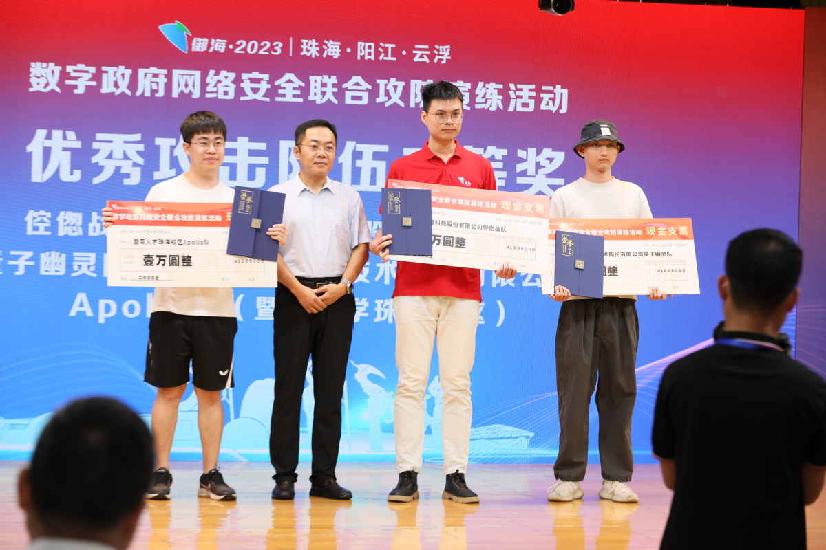 7月10日,“御海·2023”珠海·阳江·云浮数字政府网络安全攻防演练活动闭幕。本次演练是全省首个三地市联合举办的网络安全攻防活动,是落实省委“百县千镇万村高质量发展工程”的有力举措,也是贯彻广东省数字政府基础能力均衡化发展要求的重要体现。