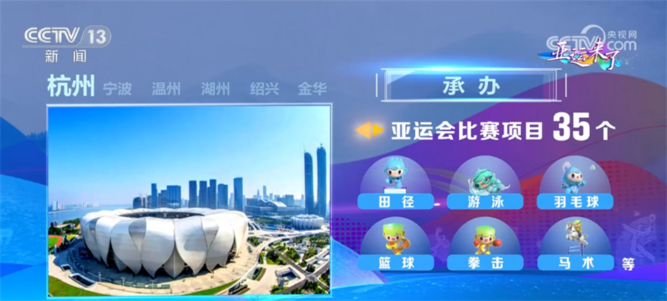 总台央视记者 任梅梅:杭州亚运会共设置了8个竞赛场馆群和7个一馆多项场馆,来提高场馆利用效率,使运动员参赛更加便捷。此外,还广泛使用新科技、新工艺、新材料,将绿色低碳理念融入到竞赛场馆的设计和运营中,务求打造首届碳中和亚运会及亚残运会。目前,亚运村和亚运分村已具备入住条件,赛事场馆的各项准备工作也正在全面、有序地推进当中。