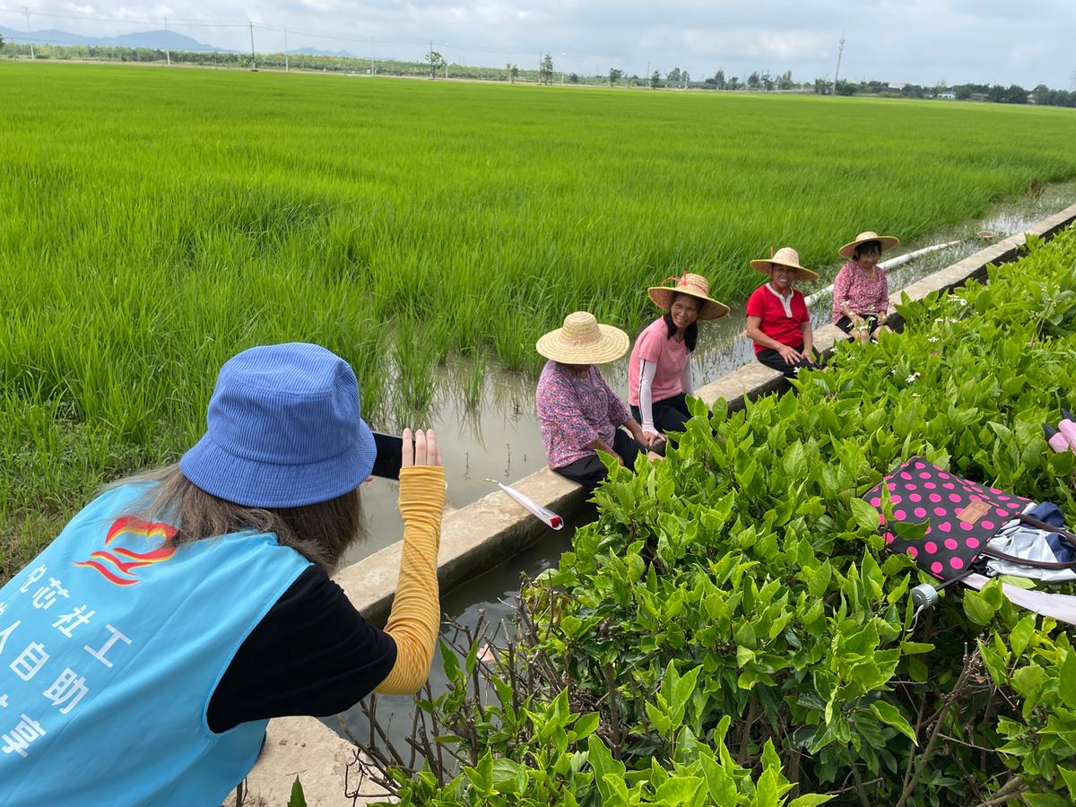 紧接着,社工带领长者们一起走进“前锋三队水稻田基地”,刚入夏的水稻田绿意盎然,长者们在一片片绿油油的水稻田中打太极、跳舞,感受着美好春光。在这美景里,前锋社区组织长者们把自己最美的一面在镜头前展示出来,记录下母亲们的最美瞬间,用影像留给辛勤一生的母亲们一份最珍贵的记忆。这些年过花甲的长者,她们也曾拥有风华正茂的青春,如今两鬓中多了几缕白发,脸上呈现出一条条逐日渐深的皱纹。虽青春不再,但风采依旧。