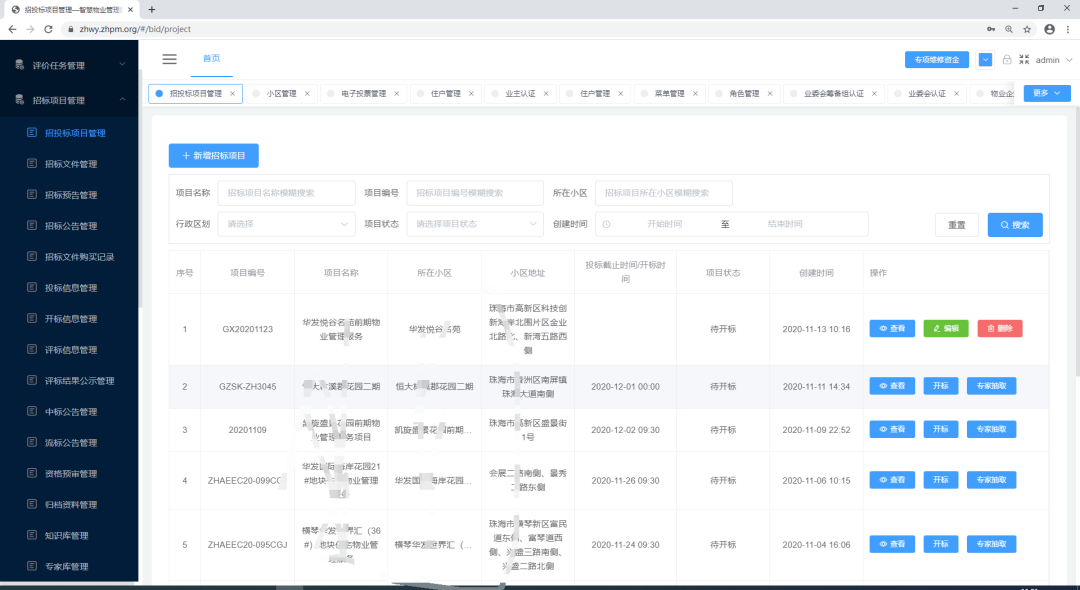 物业服务招投标系统从招标、投标、开标、评标、中标全过程规范物业服务行业招投标。以数字化手段促进过程信息透明化和公平公正,保护小区居民的合法权益。