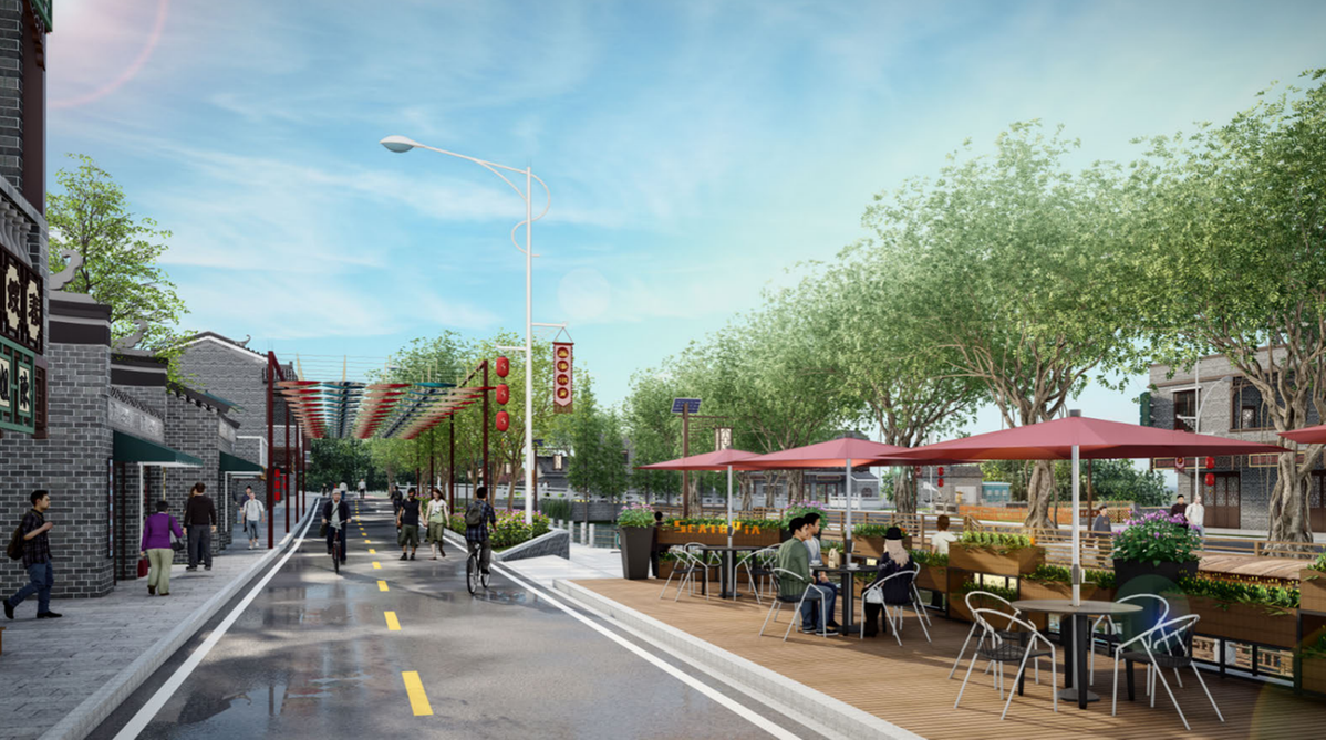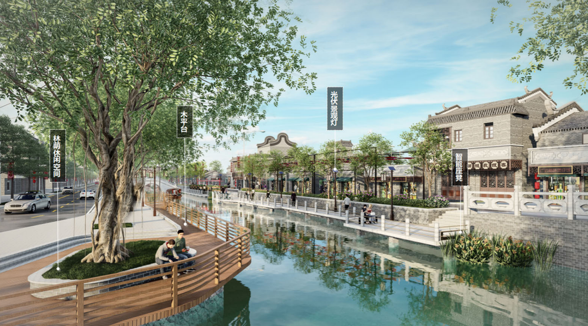 据了解,一期项目沿600米河道两岸打造缤纷水韵古街,建设工程包括68栋房屋外立面改造,沿河景观(含树木移栽90棵)、沿街人行道硬化铺装、布置商业景观小品及构筑物,雨污分流、四线合一等内容。