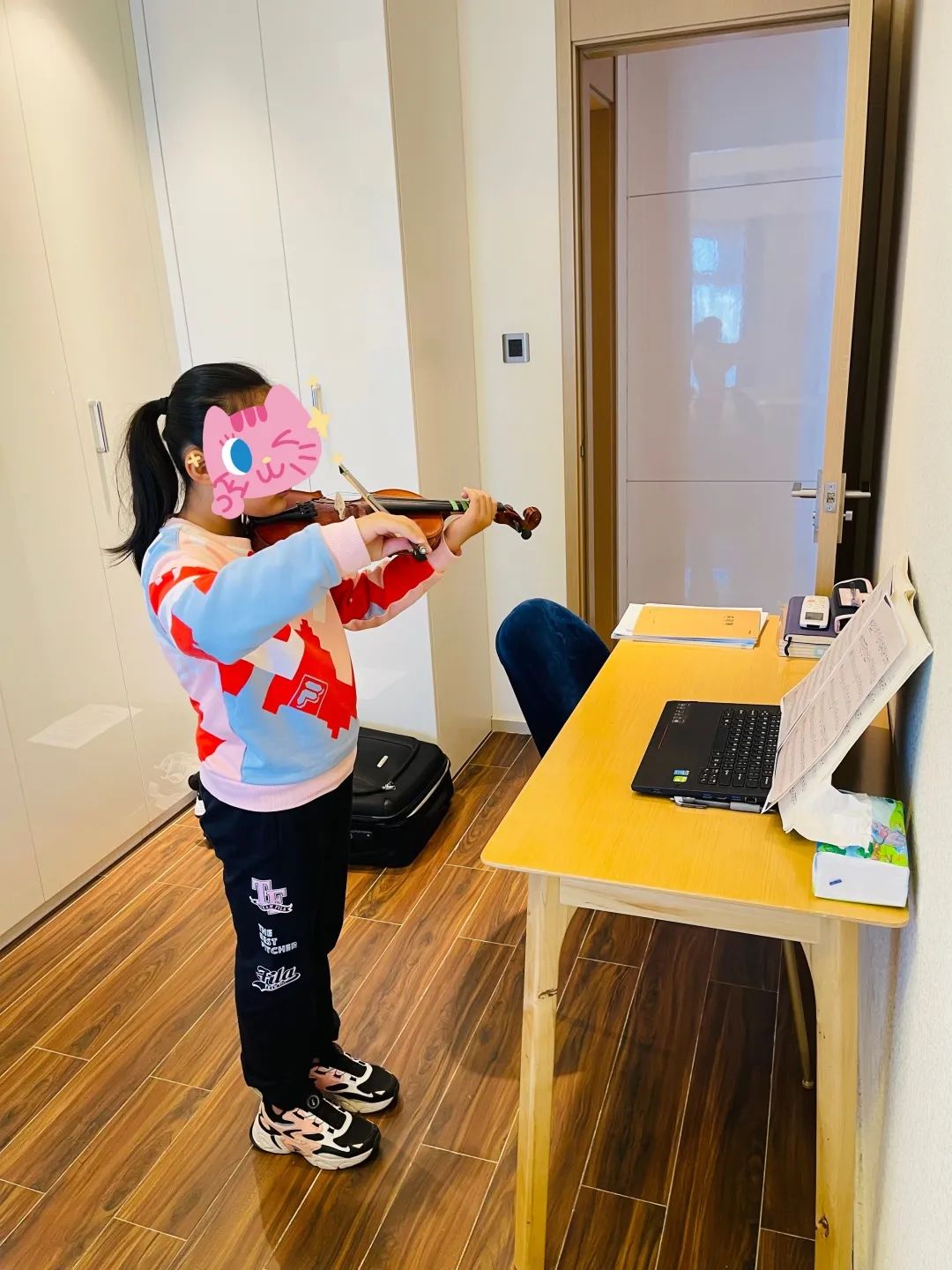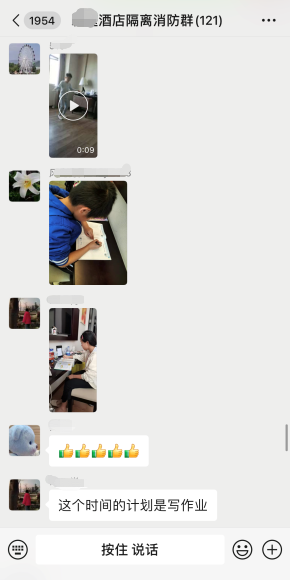 “隔离至今,孩子心情不错,每天写作业、练小提琴,很充实。酒店这边的服务很贴心,建了微信群,对隔离人员生活及时提供帮助!”