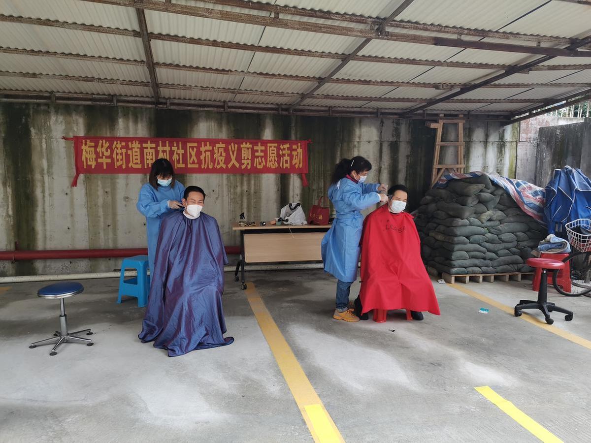 因受新冠病毒疫情影响,珠海市理发店暂停营业。1月24日下午,梅华街道南村社区组织社区义剪志愿者在梅华街道办一楼停车场开展抗疫义剪活动,为抗疫一线工作人员免费理发。