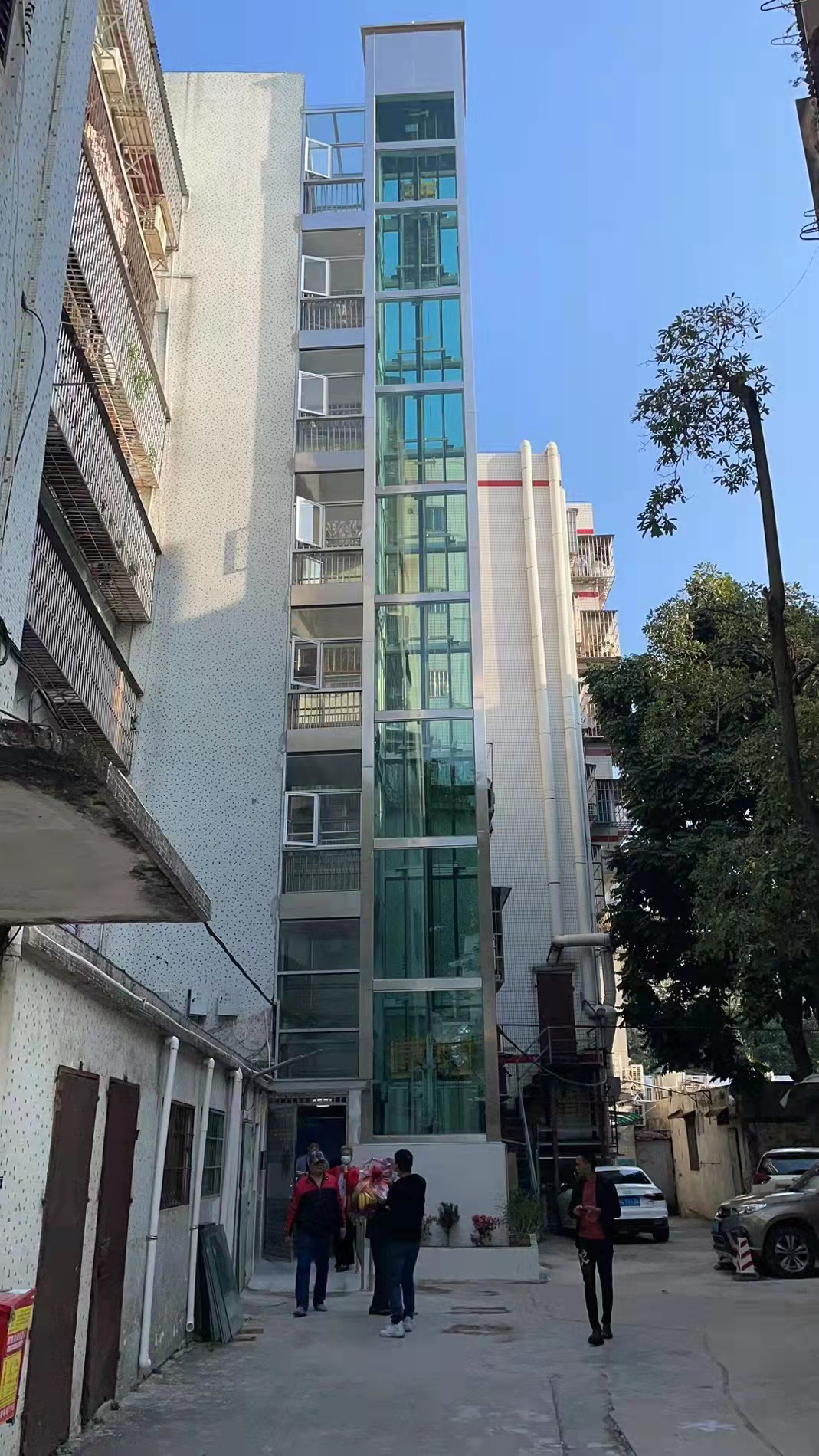 “以前爬楼梯上楼经常气喘吁吁,现在有了电梯,再也不用爬楼梯了。”家住7楼的肖姨高兴地说。