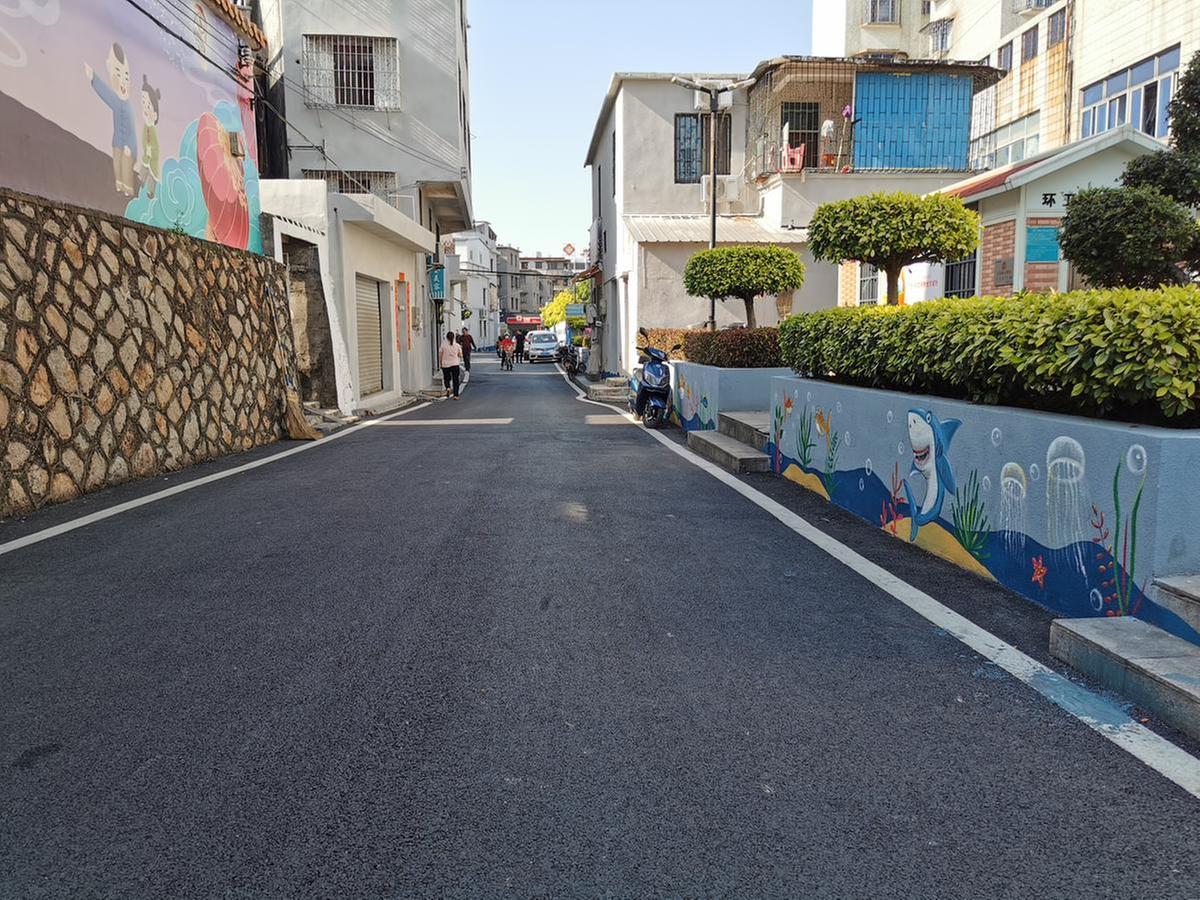红旗一巷是井岸镇的一条老巷道。它的变化得益于斗门区实施的“民生微实事”项目。据了解,红旗社区周边有不少学校,还有农贸市场,平日车流量、人流量大,而红旗一巷较为老旧,周边环境面貌有待提升。为此,红旗社区将其升级改造申报为“民生微实事”项目,通过对道路周边10栋居民楼外立面进行翻新,并对道路沥青硬底化,疏通下水道,同时增设公益广告、宣传栏,张贴创文标识,绘制情景墙绘等。