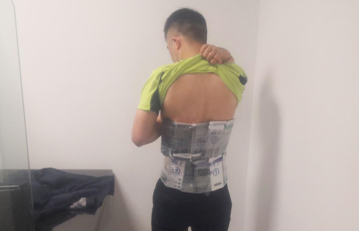 3月22日22时40分左右,一名身穿黑色外套的旅客经青茂口岸旅检大厅“无申报通道”进境,青茂海关当班关员对其进行截查发现异常。经进一步检查,查获该旅客背部绑藏的不同型号手机合计25台,涉及苹果、三星品牌。该旅客15天内有多次出入境纪录。目前该案已按规定进行处理。