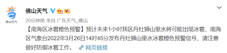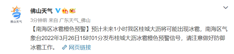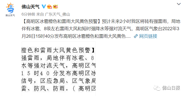 高明区、南海区冰雹橙色预警生效