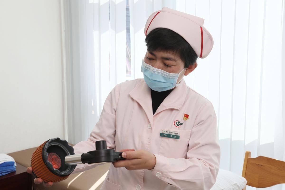 “您觉得烫吗?”治疗过程中,李静边柔声问起患者的感受,边进行相应调整。半个小时后,整个治疗过程结束。