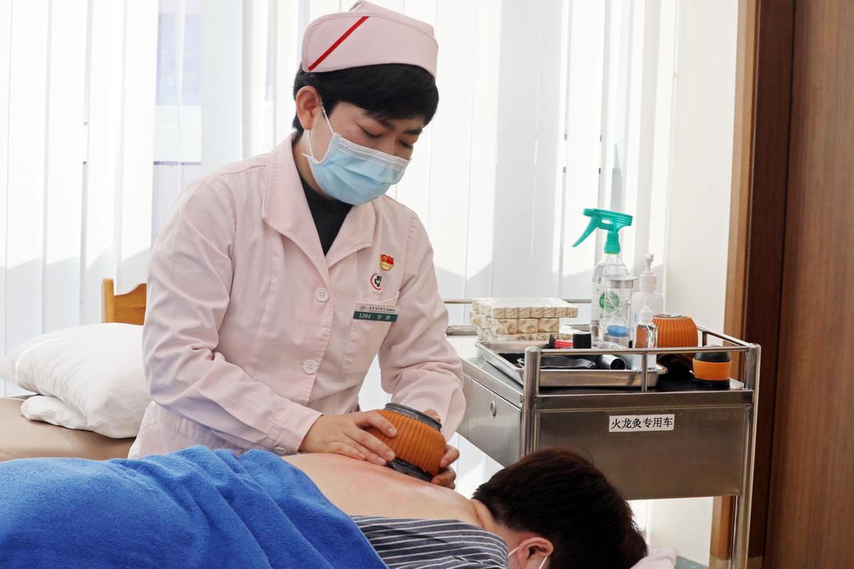 在经过仔细的“望闻问切”后,李静根据患者的病症,制定合适的护理计划,并开出了“火龙罐”的传统中医疗法,为患者减轻病痛。
