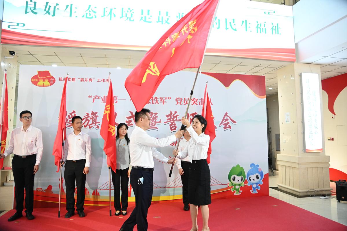 3月31日下午,珠海市生态环境局举行“产业第一•生态铁军”党员突击队授旗仪式暨誓师大会。接下来,该局将围绕市委“产业第一、交通提升、城市跨越、民生为要”工作总抓手,在服务重大项目落地、指导帮扶企业、提升案件质量、生态文明宣传等工作中开展党员突击队行动。