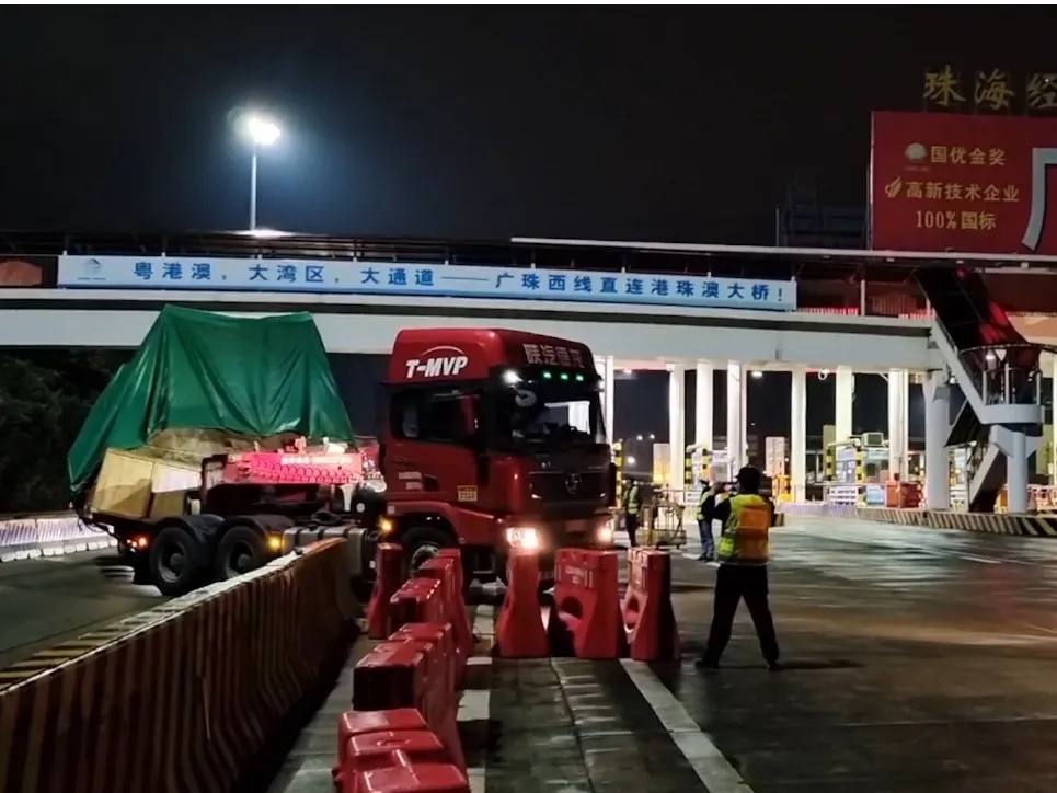 了解到这一特殊需求和困难后,广珠西线公司着力解决大件运输车辆“难进难出”问题。经收费站、路政、交警、运输单位多方协商并实地勘察,最终决定在晚上车流量较小时段,吊开南屏收费站入口处超宽车道水泥分隔带,以此解决大件运输车进入问题。南屏收费站负责人与运输单位负责人建立“一对一”服务机制,主动协调、沟通联络,协同路政人员、养护人员如期到场,有序拆除收费站水泥墩、指引大件运输车安全有序通过。