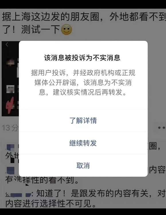 写代码让外地看不到上海朋友圈?微信:不实消息