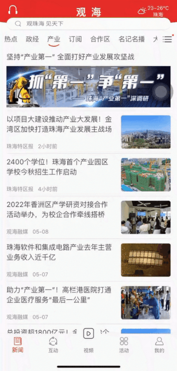 在这样加油奋进、真抓实干的热潮中,为了全方位、多层次宣传报道珠海推动产业发展的新思路、新机制、新举措,让全社会更加聚焦实业、关注产业,珠海传媒集团在持续推出产业系列报道的基础上,积极谋划、全平台联动,观海APP “产业频道”正式上线!