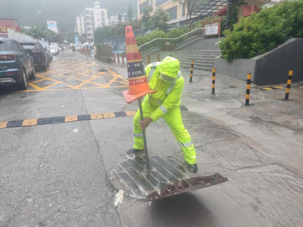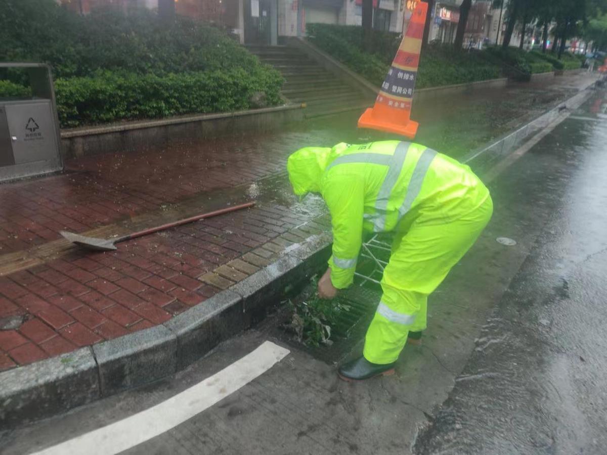 接到预警信息后,相关部门迅速安排人员、设备和车辆奔赴各水浸点,打开排洪渠闸门、清理排水口垃圾、疏通雨水箅子,并根据现场情况及时调配排涝抢险设备抽排导流。截至目前已安排306人,出动抢险车辆80余辆、强排排涝设备23台参与积水及内涝区域险情处置。