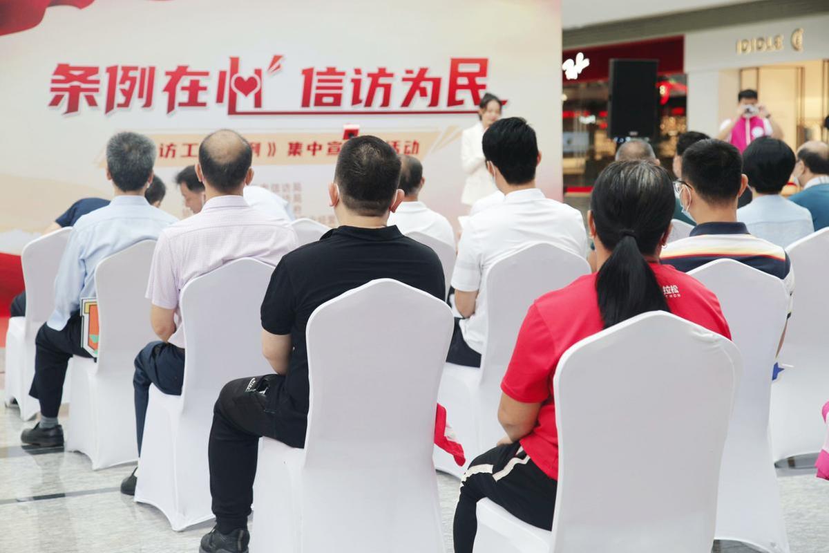 在香洲区华发商都会场,市信访局联合香洲区信访局,以及公安、司法等部门开展主题为“条例在心 信访为民”的集中宣传日活动,同时也是市区信访系统党员干部主题党日共建活动。市政府副秘书长、市信访局局长文国对《条例》颁布施行的重要意义和珠海市开展的系列宣贯活动进行了介绍,并带领市、区信访党员干部签名承诺“要做《条例》的宣传者、践行者,始终坚持人民信访为人民”。