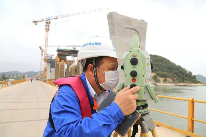 【郭波,中铁大桥局珠机城际项目部测量中心副经理。潮起潮落间,公铁同层的金海大桥已在西江出海口处成型。这背后,郭波和他的测量团队是精准把控工程建设数据的“火眼金睛”,是施工作业的“标尺”。18日,天气晴好,他又为新的测量任务忙碌起来了。】