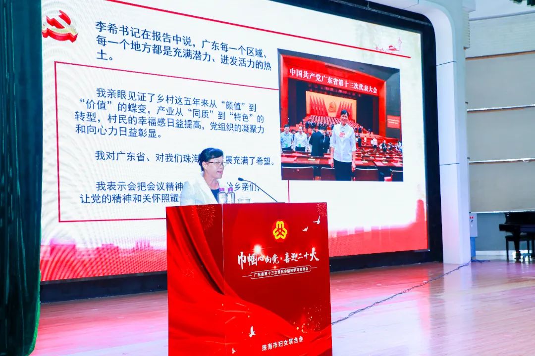 为迅速贯彻落实广东省第十三次党代会精神,5月30日上午,市妇联举办“巾帼心向党 喜迎二十大”——广东省第十三次党代会精神学习交流会,邀请了两位省女性党代表——香洲区拱北街道茂盛社区党委书记、居委会主任、妇联主席杨斌和斗门区白蕉镇昭信村两委班子成员、妇联主席梁美容进行学习交流,传达省党代会精神,讲述自己坚守岗位,践行初心使命的故事。