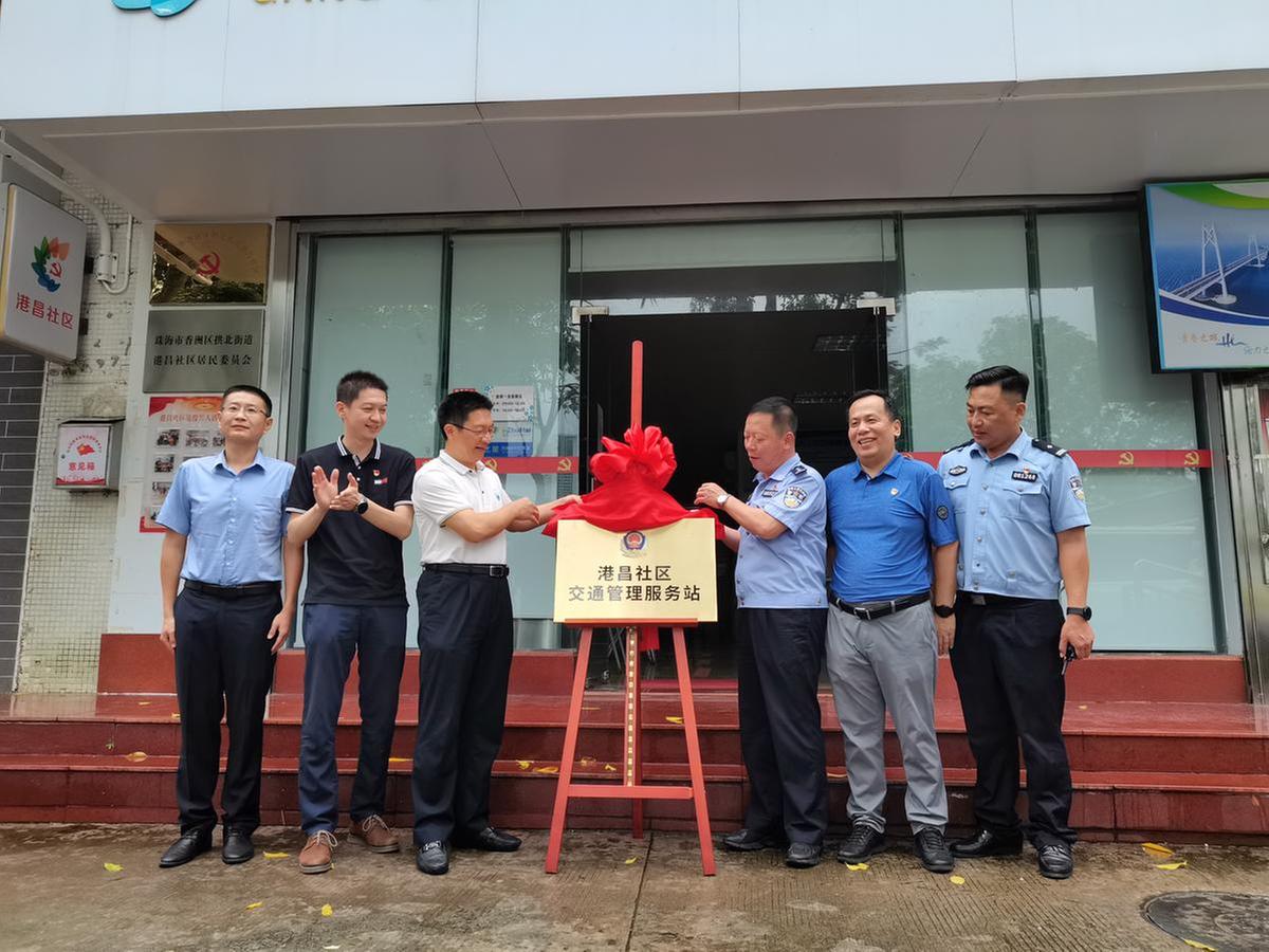 为更好地服务辖区居民,加强基层党组织交流,积极推进社区基层党建工作与交警工作的深度融合, 5月31日上午,拱北街道港昌社区交通管理服务站成立,港昌社区党委还与市公安局交通警察支队拱北大队结成党建共建关系。拱北街道办事处主任陈林、拱北交警大队大队长陈冰、港昌社区党委书记梁良、驻点团队、辖区物业主任、居民代表等20余人参加仪式。