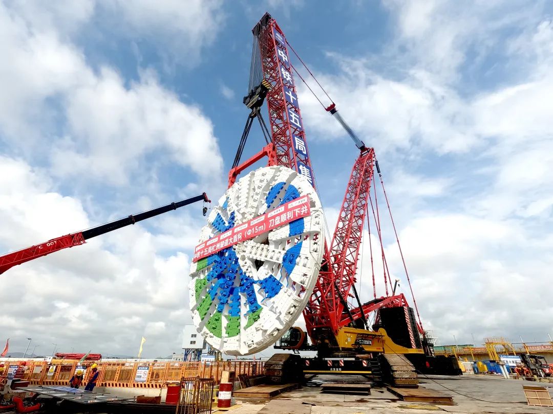 6月6日,在中铁十五局集团承建的珠海横琴杧洲隧道施工现场,“振兴号”盾构机刀盘顺利下井,标志着该工程距离盾构始发更近一步。
