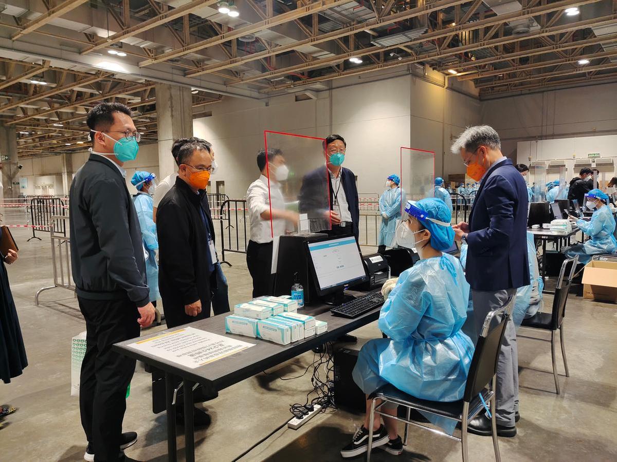 由珠海市中西医结合医院、珠海市口腔医院等援澳核酸采样队负责的澳门威尼斯人ABC馆是澳门最大的核酸采样点,也是此轮流程优化的“发源地”之一。7月5日,珠海援澳抗疫前线对接协调指挥部办公室副主任、珠海市卫生健康局副局长柴宏亮与澳门特区政府卫生局副局长郭昌宇、澳门特区政府教育及青年发展局副局长黄嘉祺来到威尼斯人ABC馆现场办公,双方通过数据分析,决定借鉴“珠海模式”并结合澳门实际,在所有的大规模核酸采样点开展采样流程优化,从而提高采样效率。