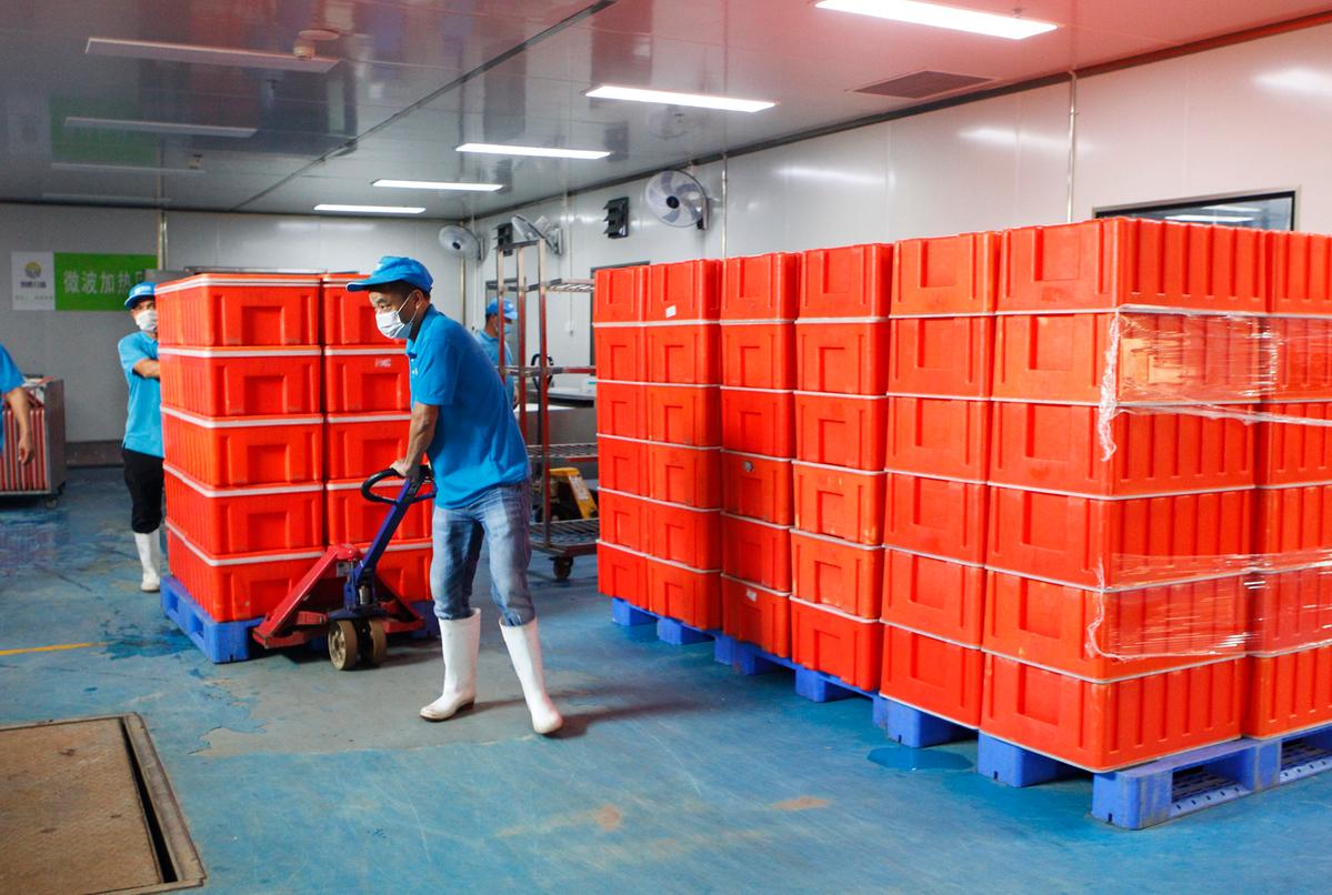 四季豆炒肉、蒜蓉白菜、番茄炒蛋、盐焗鸡腿、橙子……这是当天中午斗门区隔离酒店的儿童午餐。上午8点30分,智胜日鑫的中央厨房对隔离酒店的午餐进行分装,确保10点前发车送出。