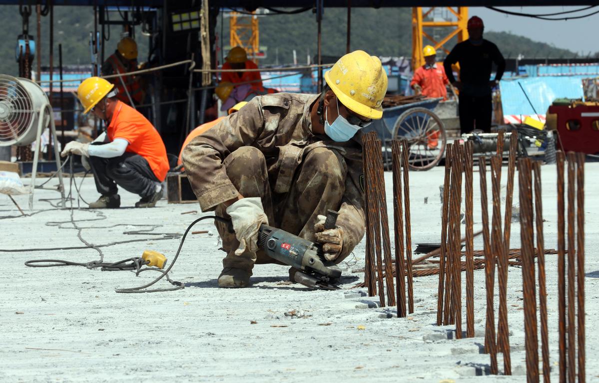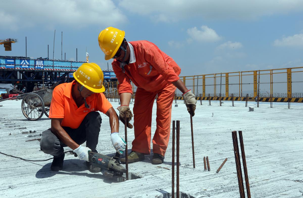 珠海近日高温预警持续生效,鸡啼门特大桥附近气象观测站点近期每日录得的最高气温都在36℃左右。中交第二公路工程局合理优化施工组织,上午11点到下午3点停止施工,并尽量将作业安排在早晨和晚间时段进行。同时为保障一线作业人员的身体健康,现场常备解暑药剂,并提供降温冰水,结合现场实际搭建遮阳棚,防止因长时间高温下作业,建设者身体出现不适。