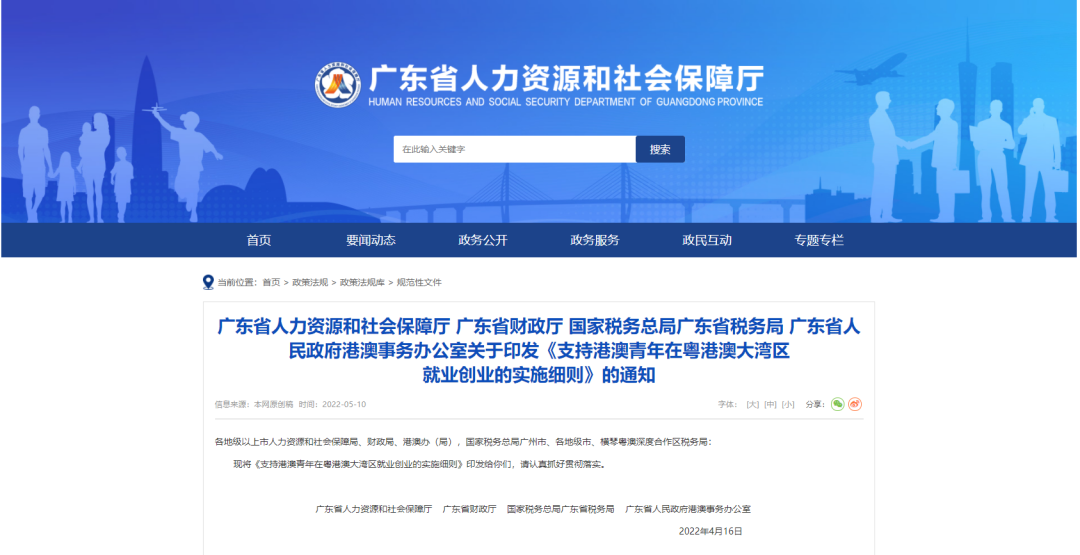 一大波补贴、福利!为鼓励港澳青年在粤港澳大湾区就业创业,广东省人力资源和社会保障厅、广东省财政厅、国家税务总局广东省税务局、广东省人民政府港澳事务办公室联合发布《支持港澳青年在粤港澳大湾区就业创业的实施细则》(以下简称《实施细则》)!