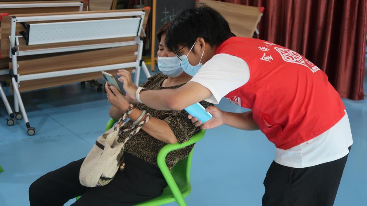 活动中,社工首先向在场的长者们讲解智能手机的基础应用、微信软件的使用以及核酸码、健康码的使用。随后社工们现场手把手教长者们如何快速找到健康码和核酸码、如何使用微信扫码加好友、如何微信发朋友圈和视频等。这些看似简单的操作,对于很多长者来说却很吃力。经过社工们的耐心教导,长者们一步步掌握了运用智能手机开展各种信息化操作。