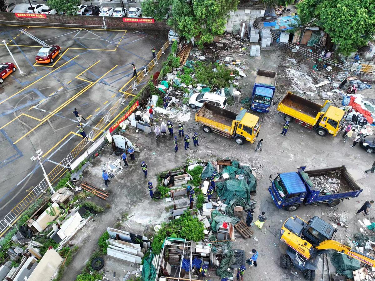 本次行动,共发动670余人次参与,出动自卸吊车、叉车、氧割机、清运车、铲车、钩机、拖车等机械设备,共拆除违建28处、面积约3550平方米,清理堆放物45吨,清运垃圾250余吨,其中由违建当事人自行清拆1处。