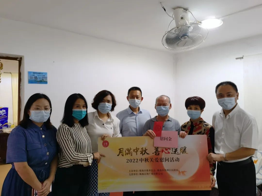 当天上午,市慈善总会、香洲区民政局和珠海百货广场有限公司代表、义工等分头出发,入户走访慰问51户困难群众家庭代表,切身实地了解散居特困老人、孤儿和事实无人抚养儿童的生活状况,为他们送上月饼、牛奶等慰问品及慰问金。本次活动中,爱心单位珠海百货广场有限公司还提供了约5万元经费支持,为香洲区9户散居特困老人进行居家环境适老化安全改造,提升散居特困老人居家和社区生活质量。