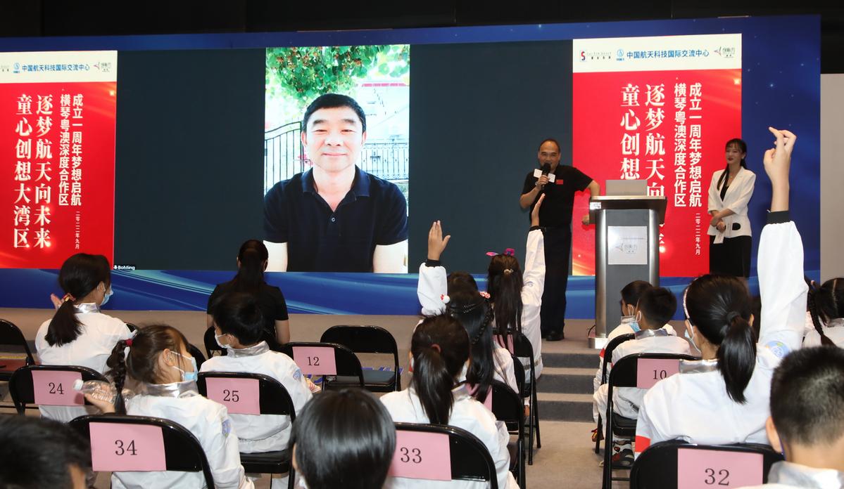 太空、星际、暗物质……无穷无尽的神秘宇宙,激发着少年学子们的航天梦。9月10日,横琴创新方中国航天科技科普展开展公益航天科普讲座,中国航天科普专家、中国航天科技国际交流中心副主任周岫彬来到现场和“英雄航天员”刘伯明惊喜连线,并与在场近百位热爱航天的珠澳青少年互动交流。