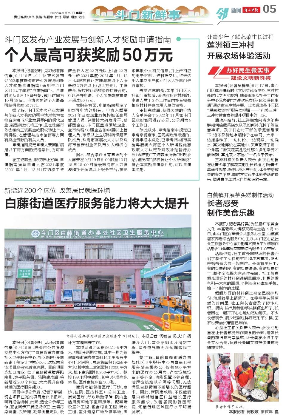 9月16日,斗门区正式发布《2022年度珠海市产业发展与创新人才奖励申请指南(适用于斗门区)》(以下简称“申请指南”)。申请时间从9月19日开始,截止时间为10月18日。申请奖励的个人最高可获得奖励50万元。