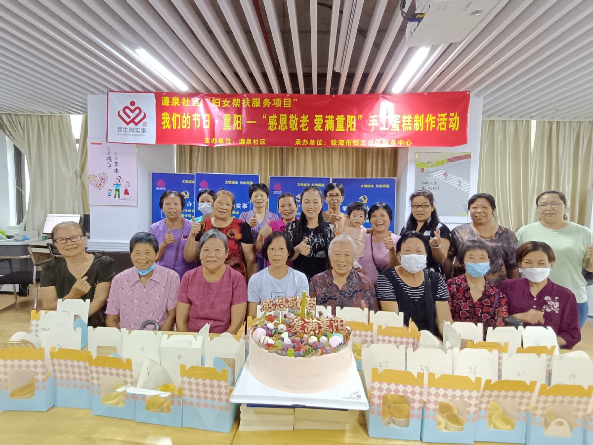 日前,南屏镇濂泉社区联合珠海市银发社区服务中心,在濂泉社区新时代文明实践站举行了“我们的节日·重阳”—“感恩敬老 爱满重阳”重阳节手工制作蛋糕活动,30余名老年妇女和社区工作人员、志愿者一起手工制作蛋糕,欢度重阳,本次活动系“妇女帮扶服务项目”中“传统节日送温暖”活动之一。