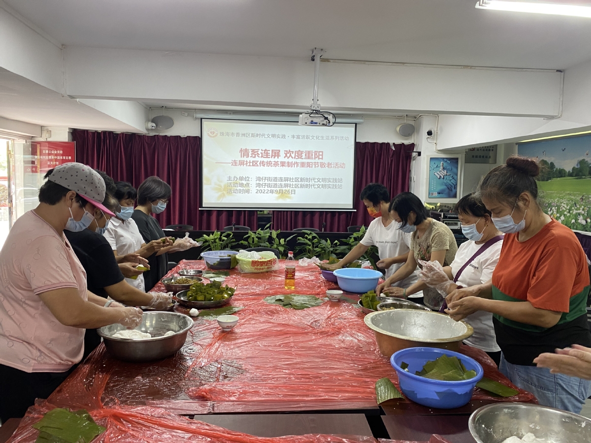 近日,湾仔街道连屏社区党委联合珠海市阳光时代慈善会在连屏社区新时代文明实践站开展“情系连屏 欢度重阳”连屏社区传统茶果制作活动,此次活动是“印迹连屏”连屏社区文化保育计划民生微实事项目的活动之一。
