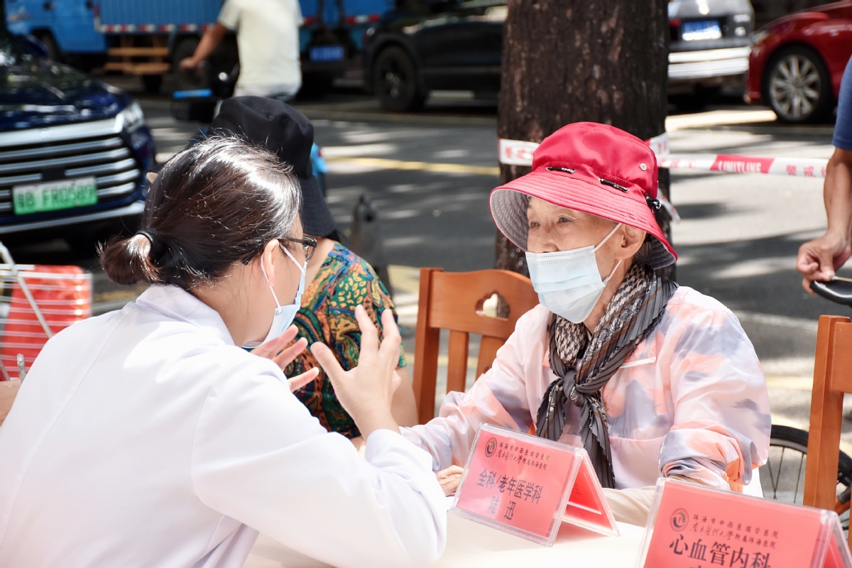 在内分泌科(糖尿病科)副主任医师陈威妮的义诊桌前,一位阿姨向医生讲述自己的病症。“我一直在关注陈医生的出诊信息,看到义诊通知后,今天一早就来了。”