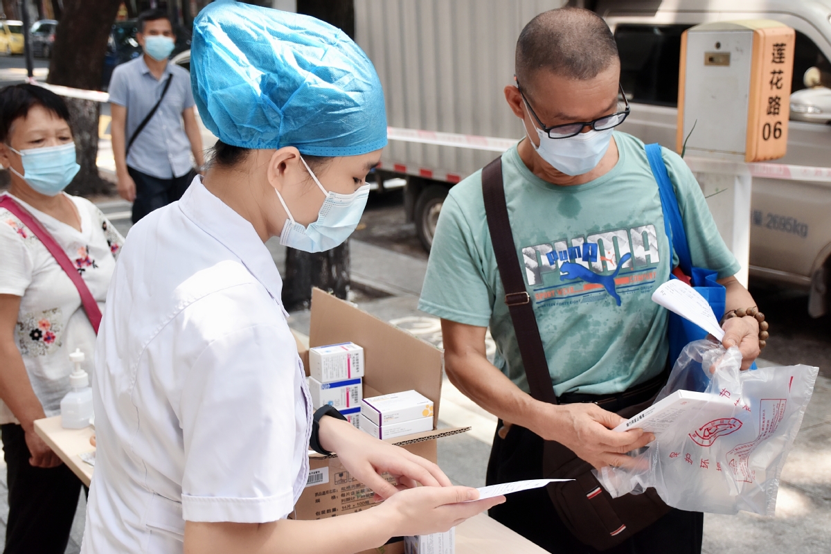 10月4日早上9点,来自粤华社区的长者们一早就来到义诊现场,排队检测血压、血糖。一位阿伯举起手机,将护士帮长者量血压的情形拍照发给家人,“我要和孩子们汇报,今天已经测了血压了。”