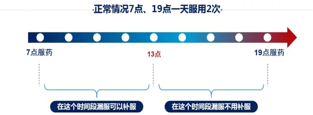 罗文基以一天服用两次的用药为例,具体补服药物时间可参考下图: