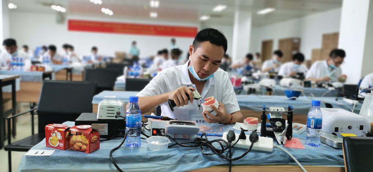 我市口腔义齿企业十分重视本次竞赛。据有关人士介绍,珠海口腔义齿产品远销欧美,出口量位列全国第二,仅次于深圳,从事口腔修复体制作的有4000多人,“义齿的制作流程涉及十多道工艺、数十个工序,口腔修复体制作工从业人员3年实践才算入门,5年才算手艺人,5年以上的沉淀打磨才有可能成为行业高手。因此,口腔修复体制作工也是珠海最为稀缺的技能人才。”