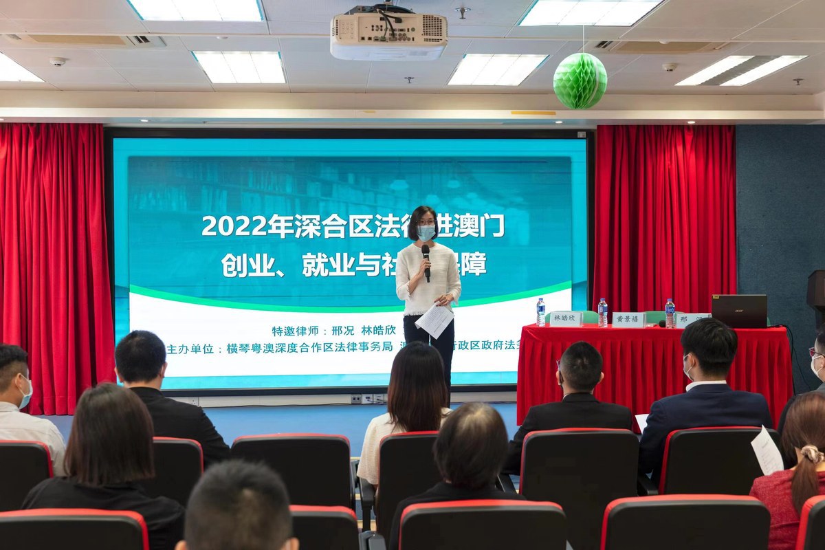 近日,由横琴粤澳深度合作区法律事务局、澳门特别行政区政府法务局合办的“合作区法律进澳门”普法行系列活动第二期暨“琴澳两地创业就业和社保制度”讲座在澳门街坊总会颐骏中心举行,共吸引近40名澳门居民参加。