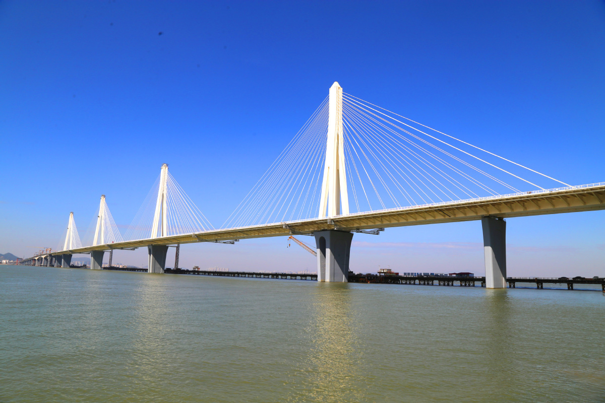 目前,由中铁大桥局承建的金海大桥磨刀门段已进入桥面系(即桥梁附属设施)施工阶段,以确保明年达到通车条件。未来大桥的投入使用不仅将将助力珠海形成一条城际铁路大通道,更将缩短珠海机场到拱北等地的出行时间。